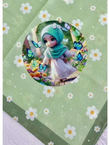 ست کیفو روسری بچگانه قواره90سبزبابونه